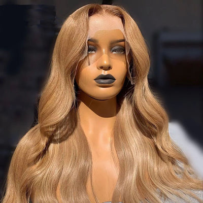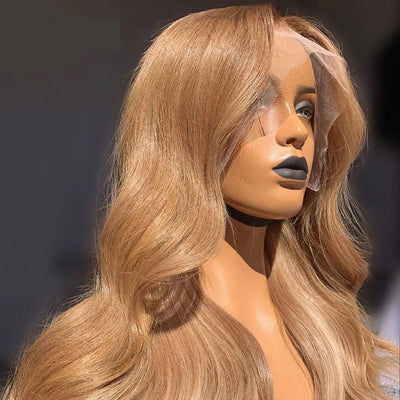 NHA Ash Blonde Wavy Human Hair Hand Tied Full Lace Wig