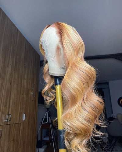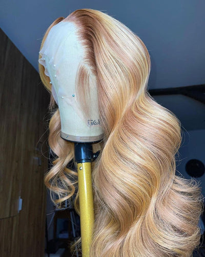 NHA Yellow Blonde Highlight Body Wave Lace Front Wig