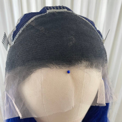 Lace Front Wig Virgin Human Hair Blue Grey 150%Density 16"