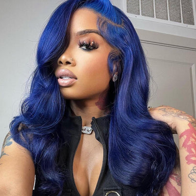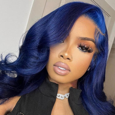 Lace Front Wig Virgin Human Hair Dark Blue 150%Density 18"