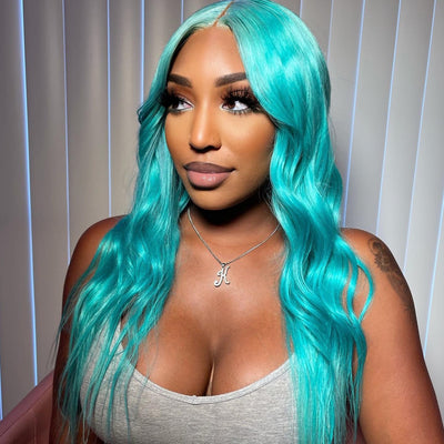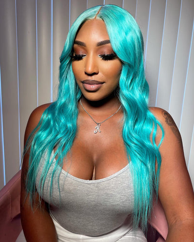Lace Front Wig Virgin Human Hair Blue Color  150%Density 20"