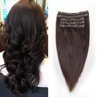 NHA Dark Brown Straight Clip in Human Hair Extension