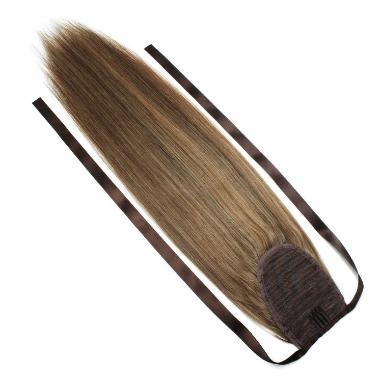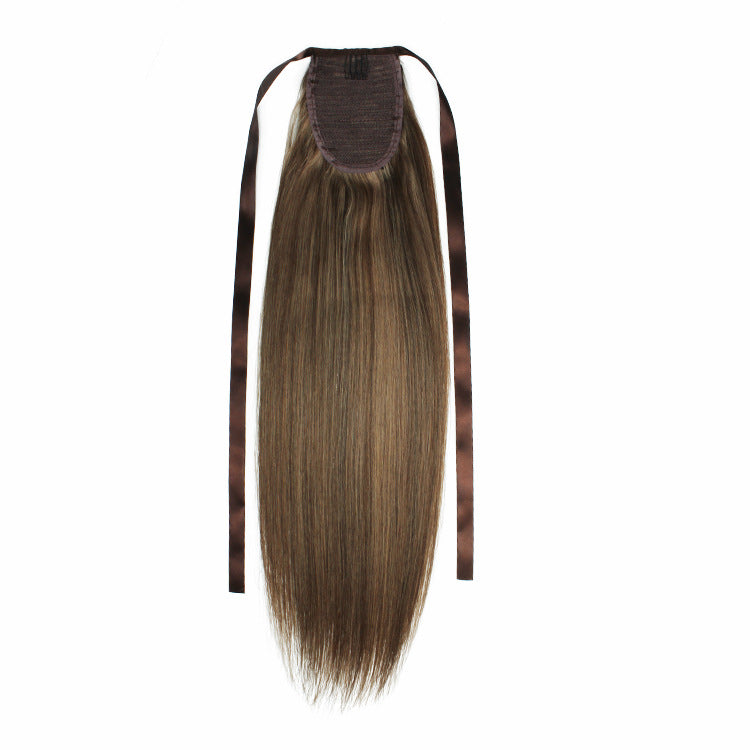 NHA Remy Human Hair Silky Straight Ponytail with Brown High Light