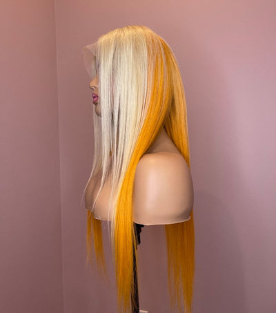 Virgin Human Hair Lace Front Wig Blonde Orange 150%Density 22"