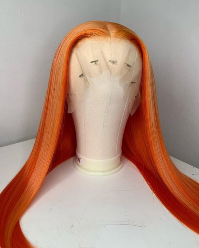 Lace Front Wig Virgin Human Hair Orange Highlight 150%Density 20"