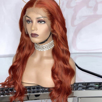 Lace Front Wig Virgin Human Hair Copper Red 150%Density 22"
