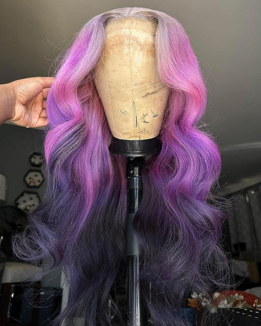 • Luxury Remy Dark Purple Ombre 100% Human Hair Lace Front Wig
