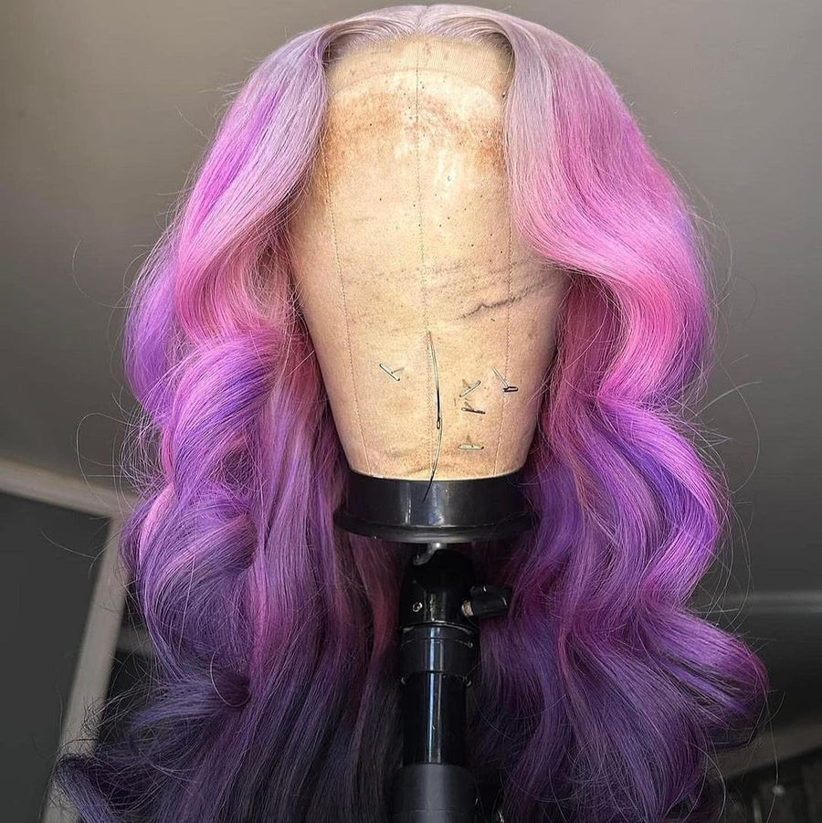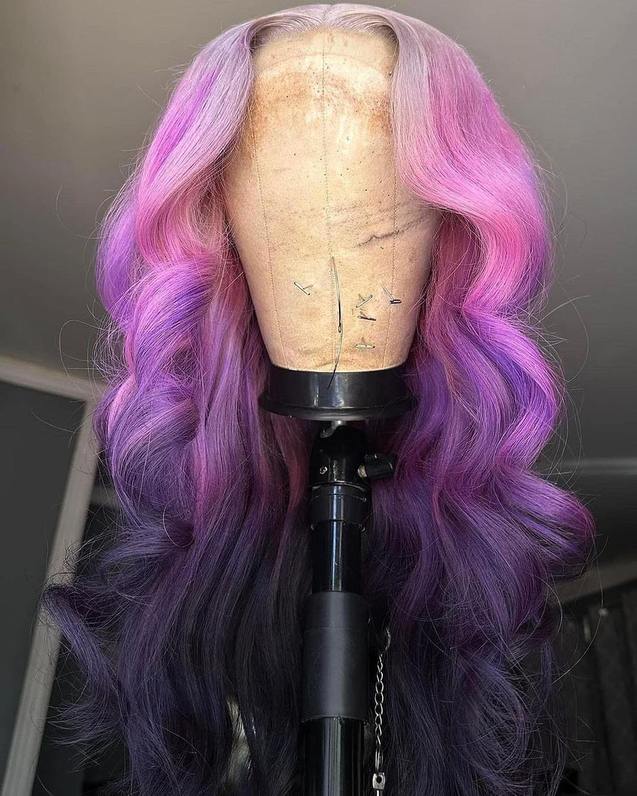 Luxury Remy Dark Purple Ombre 100% Human Hair Lace Front Wig