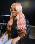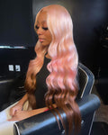 Pink Ombre Wavy Ombre Lace Front Wig Human Hair Wig