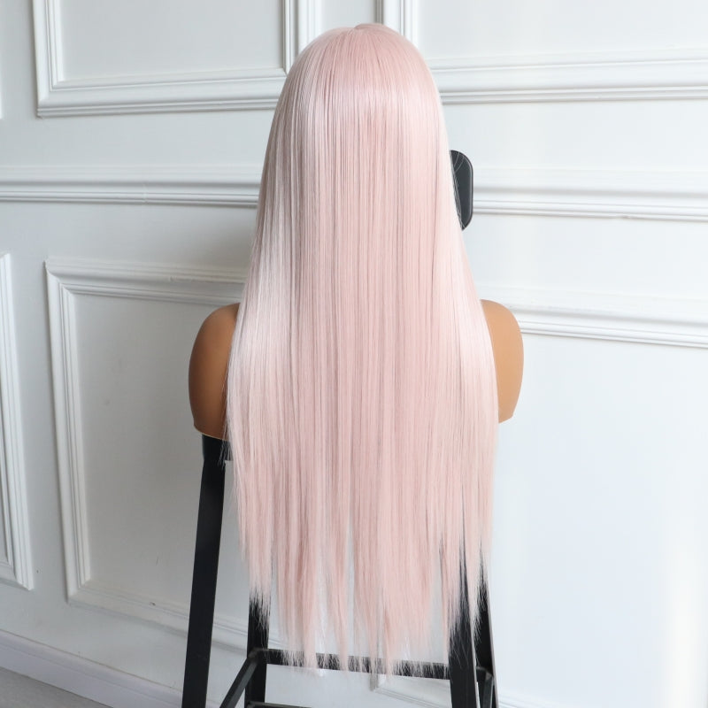 Blush Pink 13X4 Lace Wig Synthetic Heat Resistant Wig❤❤❤Express yourself with the best quality synthetic wigs, carefully crafted to enhance your everyday elegance.Heat Resistant 130-160°C (266-320°F) She Should Never To Be Dyed Or Bleached.➊ 13X6 Large Parting Space (hand made)➋ Medium Cap Size (21.5"-22.5")➌ Length will be same as Image➍ 200% Medium Density➎ Transparent Lace (very natural)➏ Pre-plucked Hairline➐ There is Straps and Combs in the cap