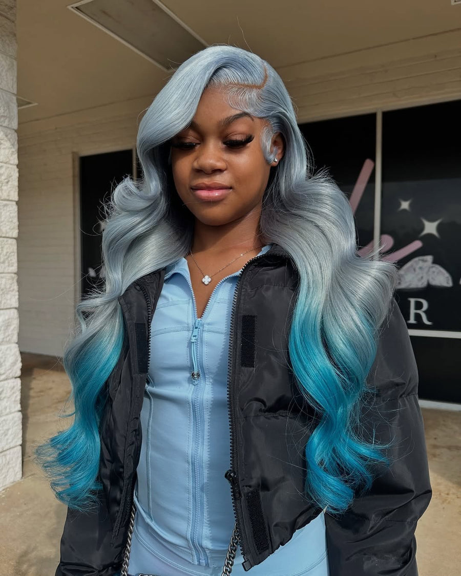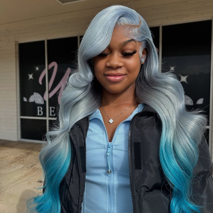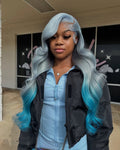 • Dusty Blue Ombre Color Wave Lace Front Wig Human Hair Wig