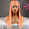 NHA Light Orange Pink Long Straight Lace Front Wig
