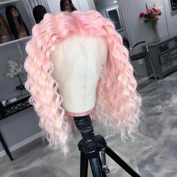 NHA Cute Pink Curly Bob Lace Wig